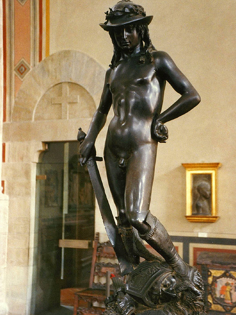 Als weiteres Werk von Donatello fällt der Marmor-David ins Auge. Mit dieser Figur schuf der Künstler erstmals eine Skulptur, die sich durch ihre lockere Haltung von den starren gotischen Traditionen löste. Donatellos Amor-Attis entstand um das Jahr 1440 und stellt eine Gottheit aus der griechischen Mythologie dar. Die Figur ist somit eines der Werke mit einer antik-heidnischen Thematik.